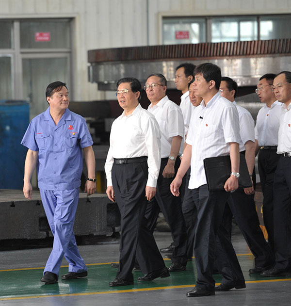 ÔÚ¿¼²ì¿¢ÊÂʱ£¬×ÜÊé¼ÇÓëÎäÖØÔ±¹¤Ç×ÈÈÎÕÊÖ»°±ð£¬²¢¶ÔÆóÒµµÄÉú³¤¼ÄÓèºñÍû£¬ËûÇ¿µ÷Ö¸³ö£¬ÎäÖØµÄʵ¼ùÅú×¢£¬ÌåÖÆÁ¢ÒìºÍÊÖÒÕÁ¢ÒìÊǹúÓÐÆóÒµ¼á³ÖÉúÆø»îÁ¦µÄÖ÷ҪԴȪ¡£ÏȽø×°±¸ÖÆÔìÒµÌåÏÖ×ÅÒ»¸ö¹ú¼ÒµÄ¹¤ÒµÊµÁ¦£¬ÊÇ¡°Ê®¶þÎ塱ʱÆÚ¹ú¼ÒÖØµãÉú³¤µÄÕ½ÂÔÐÔ¹¤Òµ¡£ËûÏ£ÍûÆóҵ׽ס»úÔµ¡¢³ËÊÆ¶øÉÏ£¬¼á¶¨²»ÒÆ×ßÉˢС¢×ÔÖ÷Á¢Òì֮·£¬Ò»Ö±ÌáÉý½¹µã¾ºÕùÁ¦£¬ÎªÔö½øÎÒ¹ú×°±¸ÖÆÔìÒµÓÉ´ó±äÇ¿×÷³ö¸ü´óµÄТ˳¡£